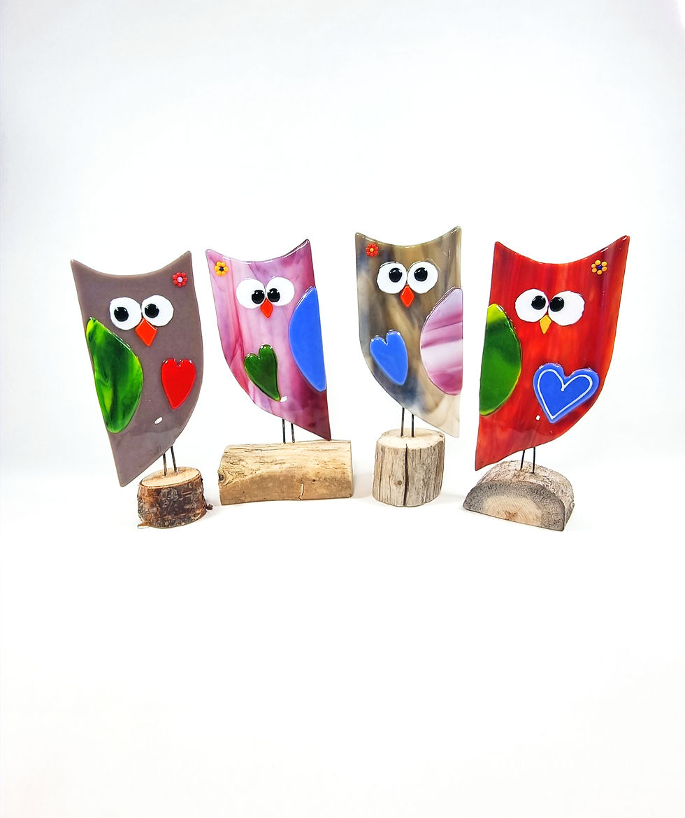 Samling av glasskunst som er montert på rekved for et maritimt og moderne preg